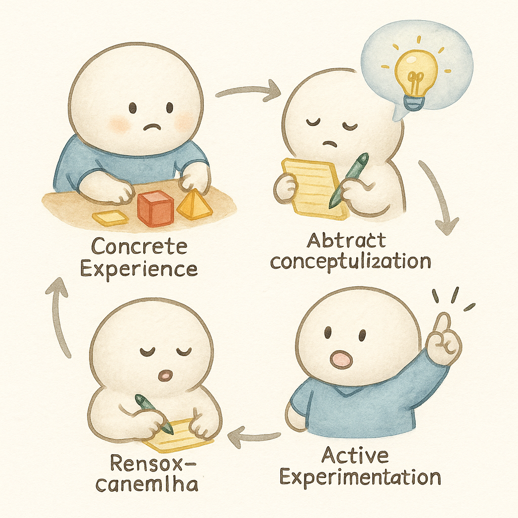 Kolb는 학습을 지식 전달이 아닌 ‘경험→반성→개념화→실험’의 순환 과정으로 봅니다.