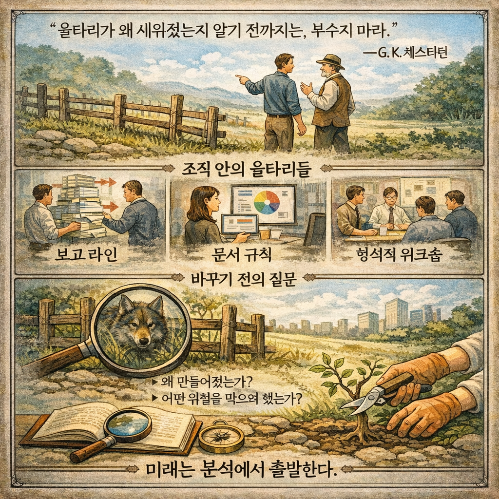 🔨왜 있는지 모른다면, 부수지 마세요 – 조직문화와 '체스터턴의 울타리'