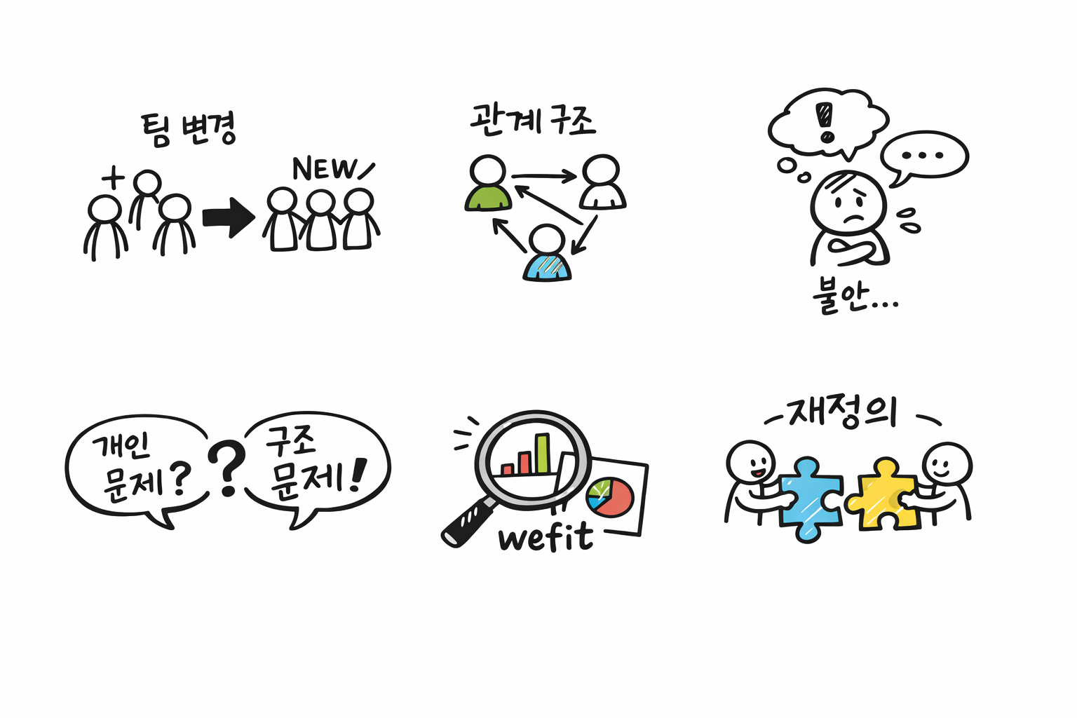 wefit검사는 누가 좋은 사람인지 가려내는 도구가 아닙니다. 개인의 역할 기여 방식, 동기 구조, 스트레스 요인, 의사소통 패턴을 팀 단위로 조망하는 도구입니다. 이를 통해 팀은 감이 아닌 데이터로 구조를 점검할 수 있습니다.