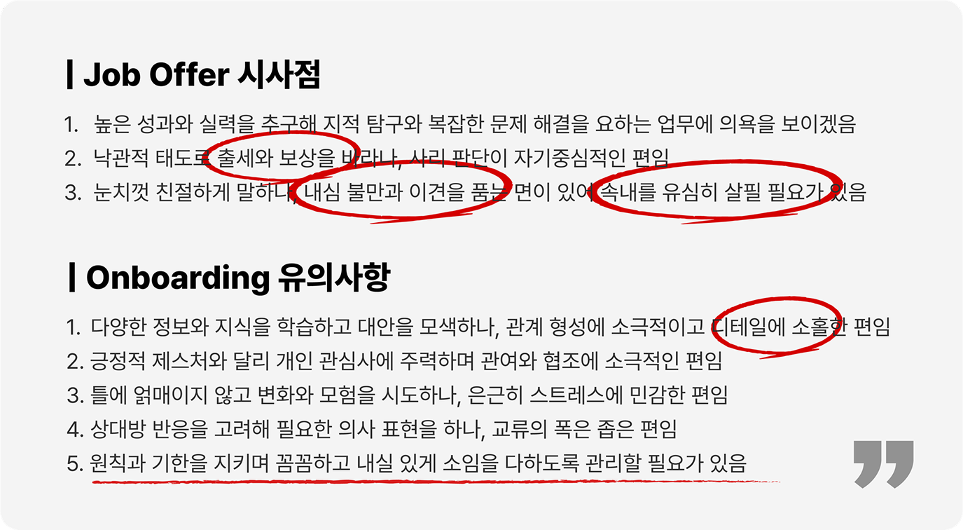 잡오퍼, 온보딩 포인트, 장기개발 제안 등의 시사점을 종합적으로 제공합니다.